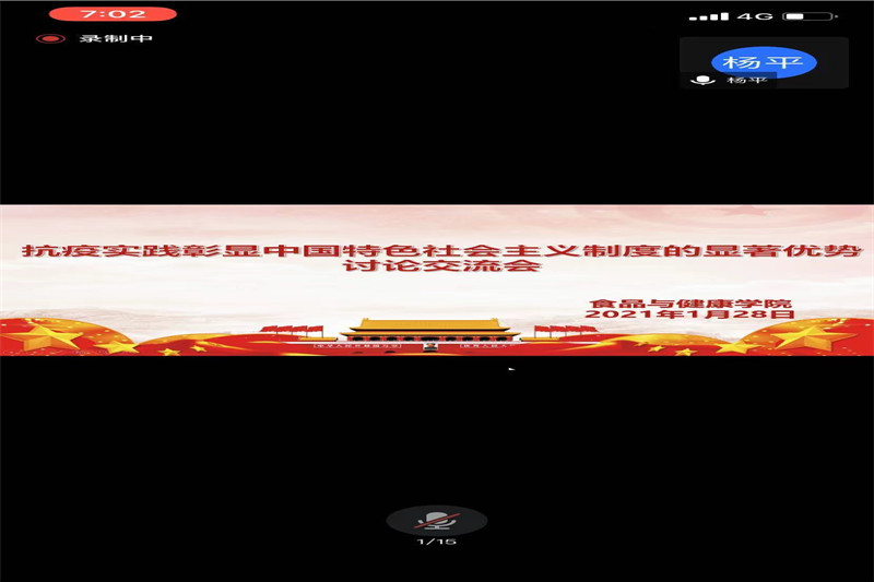 交流会上,邀请了曾参与“十三五国家重点研发计划项目”并以第一作者发表SCI、EI、核心论文7篇,曾任博士生党支部书记的杨平和2020年9月以第一名的成绩考取学院研究生,现担任食品科学与工程硕士生党支部纪律委员的李捷两位党员结合中国特色社会主义优势进行了发言,与发展对象进行了充分的讨论。她们提到此次抗击疫情保卫战中,体现了中国特色社会主义制度承载的人民至上的价值优势、党的集中统一领导的政治优势、全国一盘棋的合力优势和全面依法治国的法治优势。两位党员分享完毕,学员们纷纷主动发言。