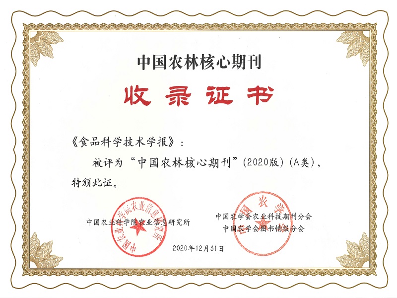 2021年2月,中国农业科学院农业信息研究所联合中国农学会农业科技期刊分会、中国农学会图书情报分会,正式发布“2020中国农林核心期刊”遴选结果。我校《食品科学技术学报》再次入选“2020中国农林核心期刊(A 类)”。