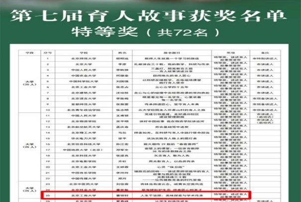 在纪念中国人民抗日战争暨世界反法西斯战争胜利八十周年、迎接第41个教师节之际,9月6日,由北京市委教育工委、北京市教委主办的“为党育人 为国育才——第七届北京市大中小幼教师讲述育人故事展示交流活动”在北京师范大学第二附属中学成功举办。我院教师曹锦轩荣获大学组特等奖。