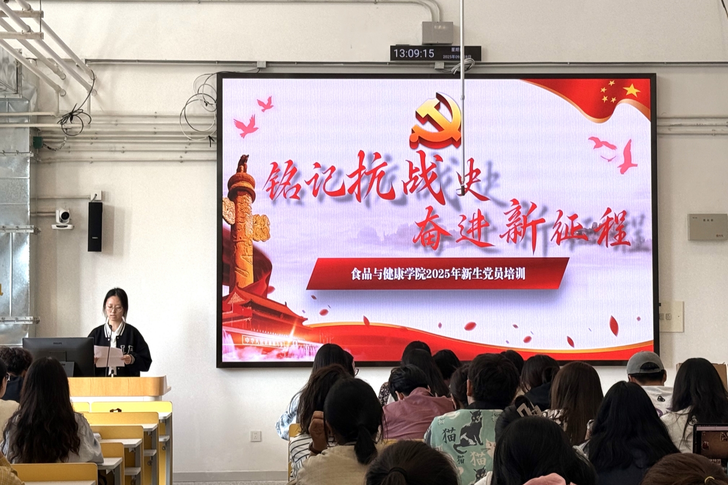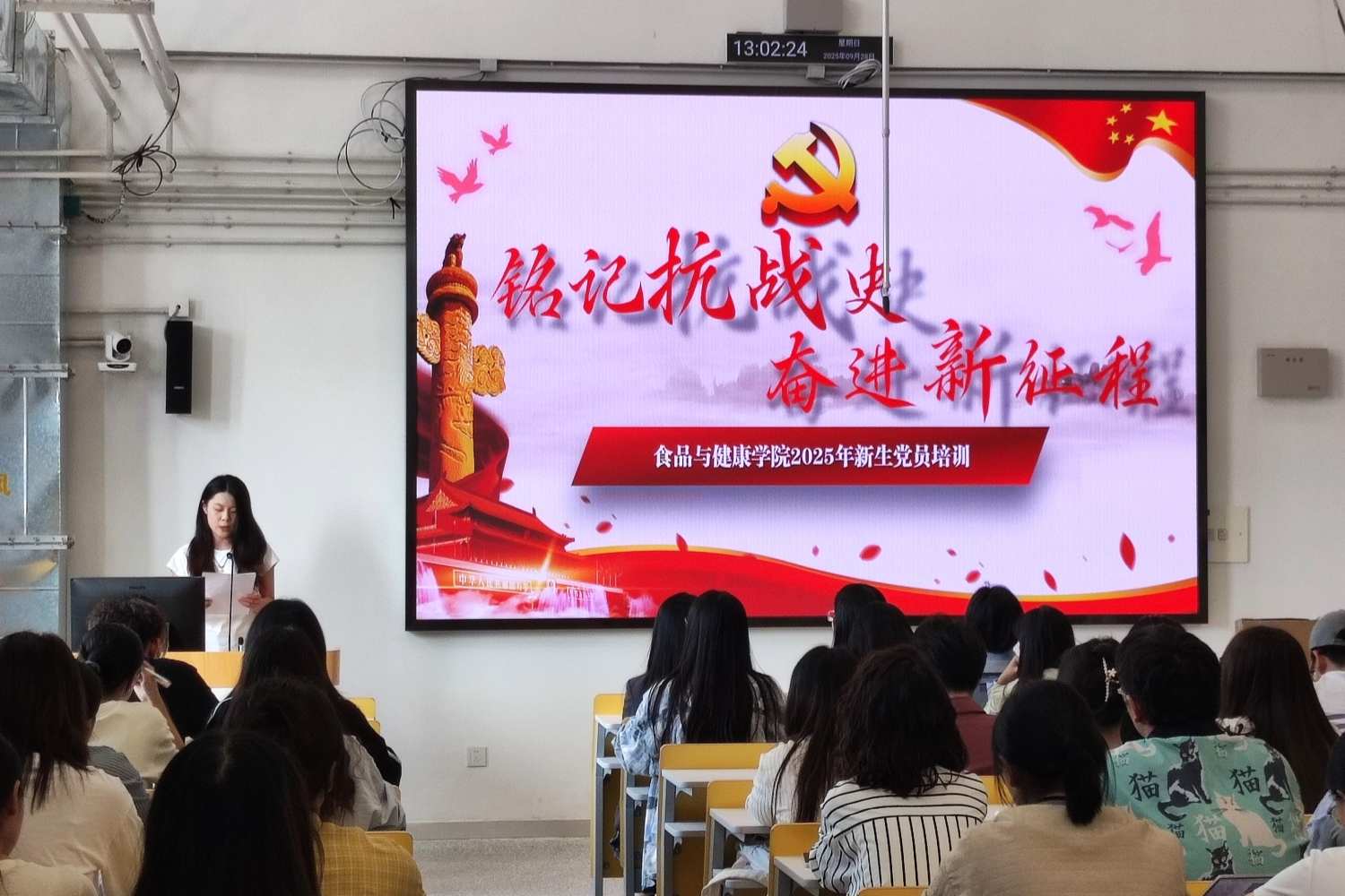 为加强新生党员的党性修养,强化历史使命感与责任感,激发爱国情怀与奋斗精神,在祖国76周年华诞来临之际,皇冠正规娱乐平台于9月28日在食品大楼组织新生党员培训,开展“铭记抗战史·奋进新征程”主题党日。学院党委副书记熊慧、专职组织员李娜出席活动,活动由研究生新生辅导员赵婷主持。